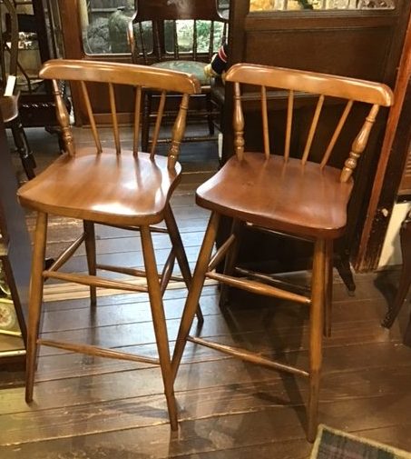 1980年代のパブで使われていたスツールです。座面面積(座面最大寸法 幅360×奥行335mm)は狭いですが、背の傾きがあり座り心地は安定してます。2脚入荷しています!